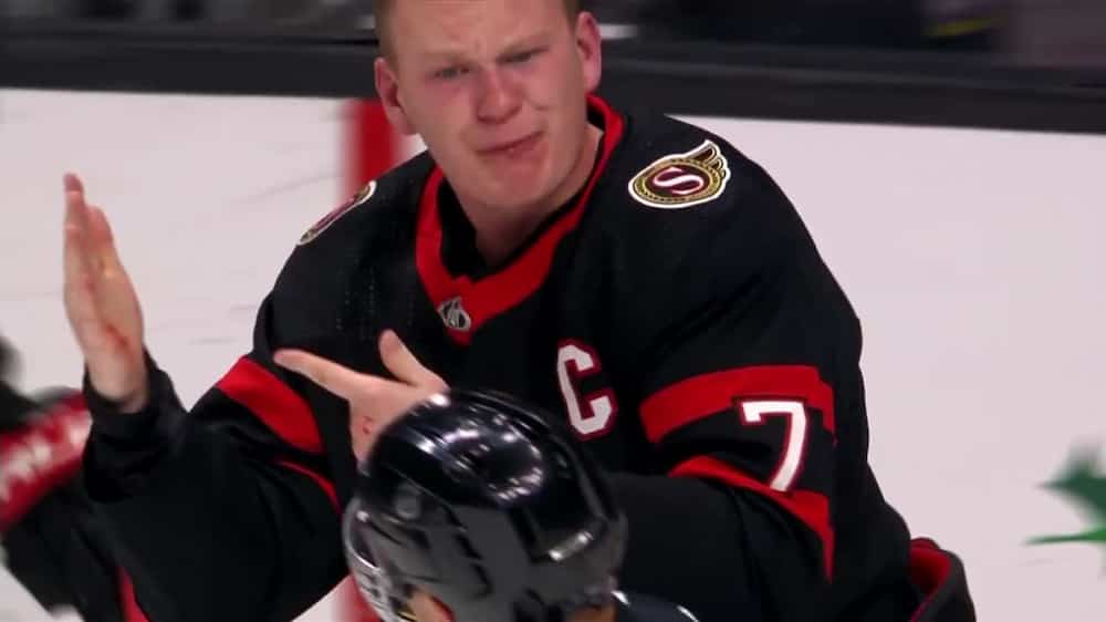 Après leur combat, Tkachuk a montré sa main ensanglantée aux arbitres. Voyez les images de la séquence dans la vidéo ci-dessus.